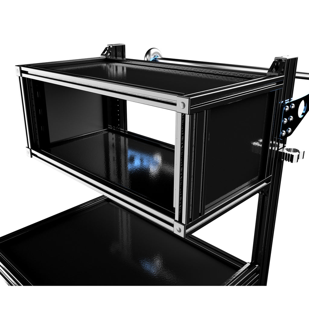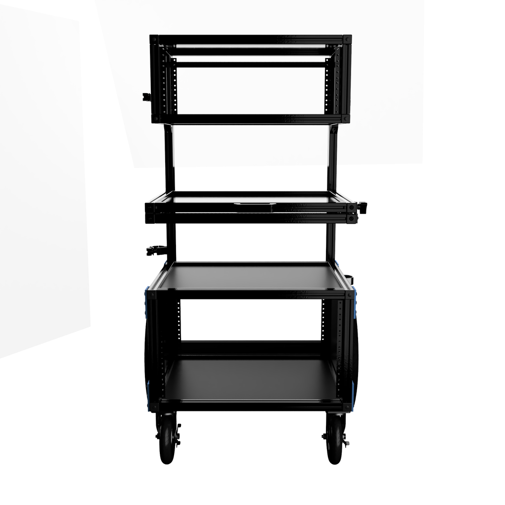 The Raven features 10U of 19" rack space (6U on the bottom case, 4U on the top) and a patented sliding mixer shelf perfect for a Sound Devices CL-16, Zaxcom Mix 16, or Aaton Cantaress.