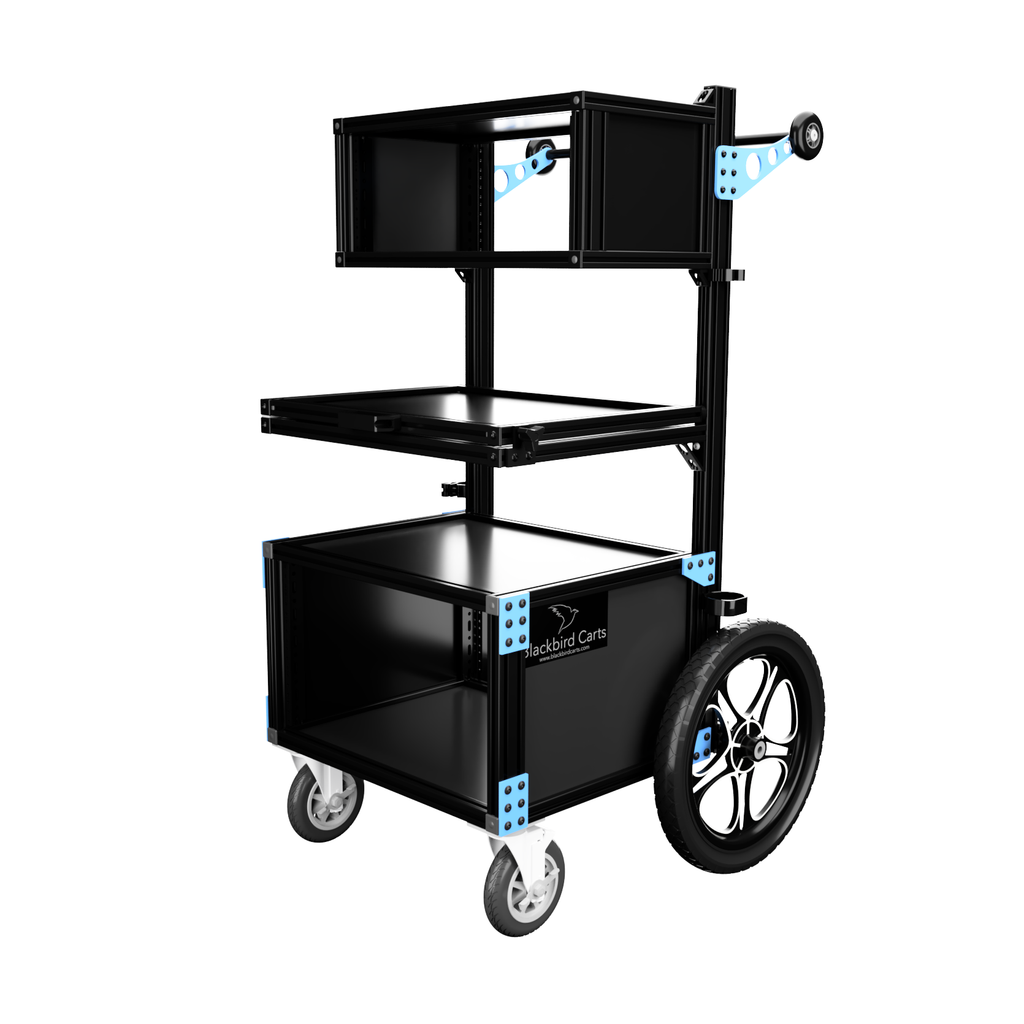 Roll on all 4 wheels or tilt it back like a hand truck for rough terrain. All Blackbird Carts can be laid back and loaded into any SUV, pickup truck, or many other vehicles.