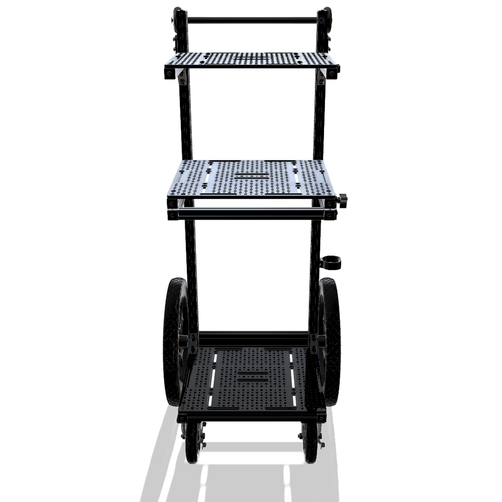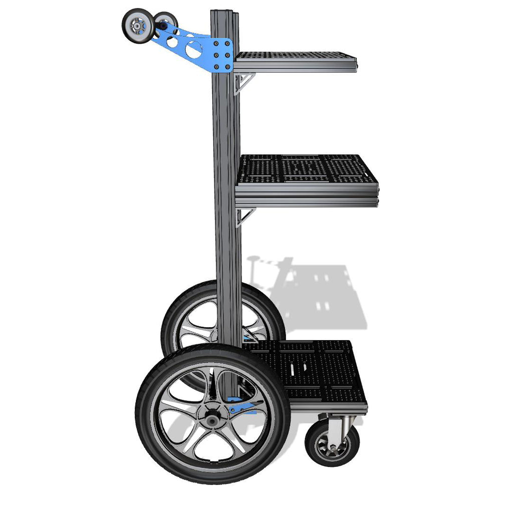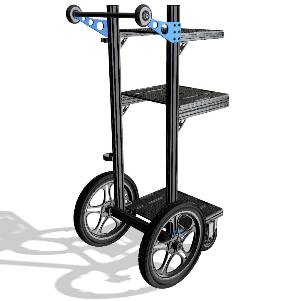 Sleek, Efficient, and Modular. The Meadowlark is perfect for bag work, a mobile DIT station, or the base to build up over time. This cart lets you roll into the gig with everything you need in one trip. Put your storage case on the bottom, the gear up top, and head on in. Upper shelf and Blue Bracket assembly is height adjustable to suit personal needs. The Meadowlark can be transported upright or laid back and rolled on 4 wheels.